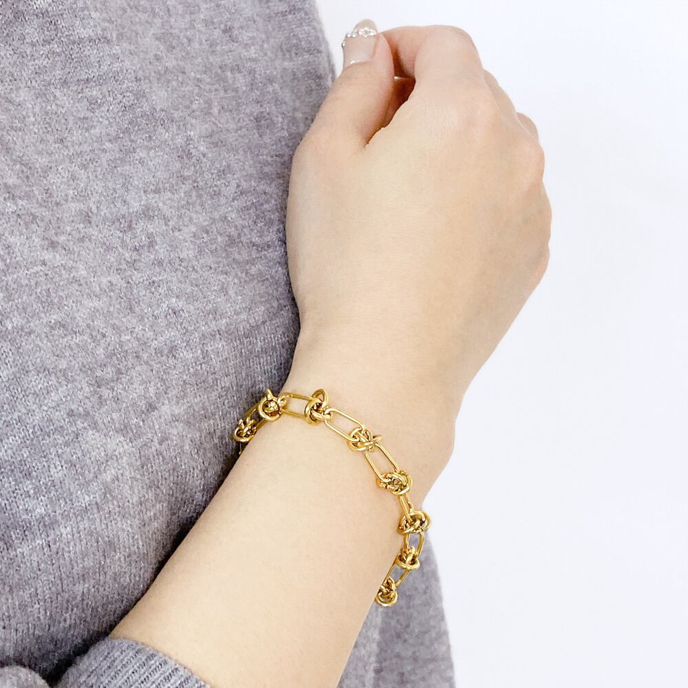 個性とトレンド感をプラスしたステンレス製のデザインチェーンブレスレット。