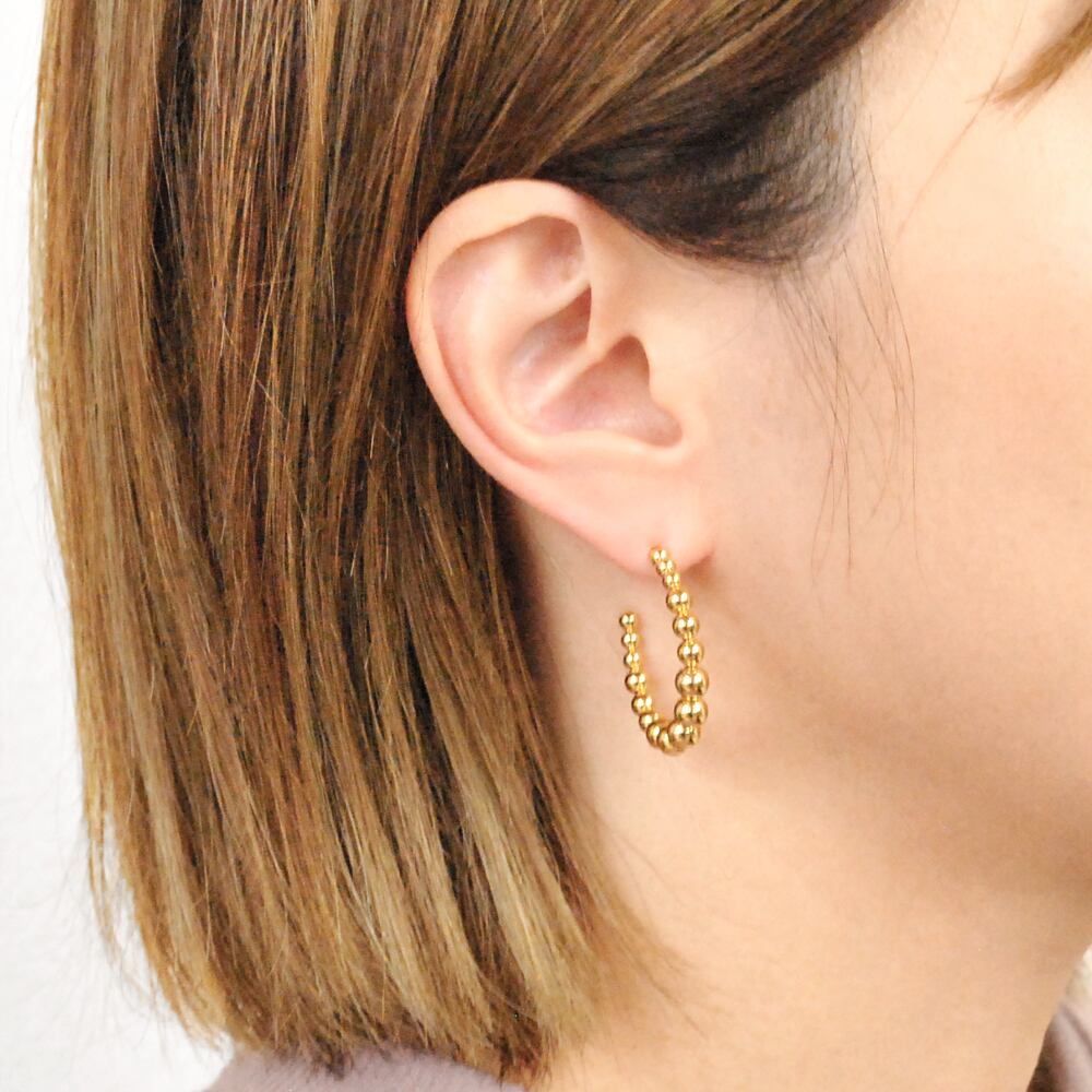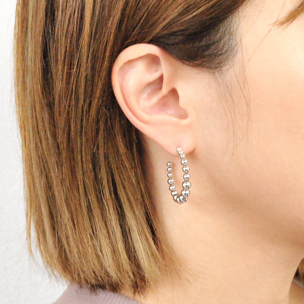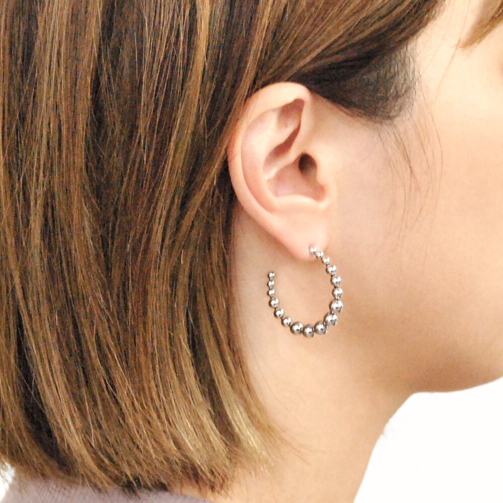 グラデーションに並べたメタルボールがアクセントのステンレス製デザインフープピアス♪