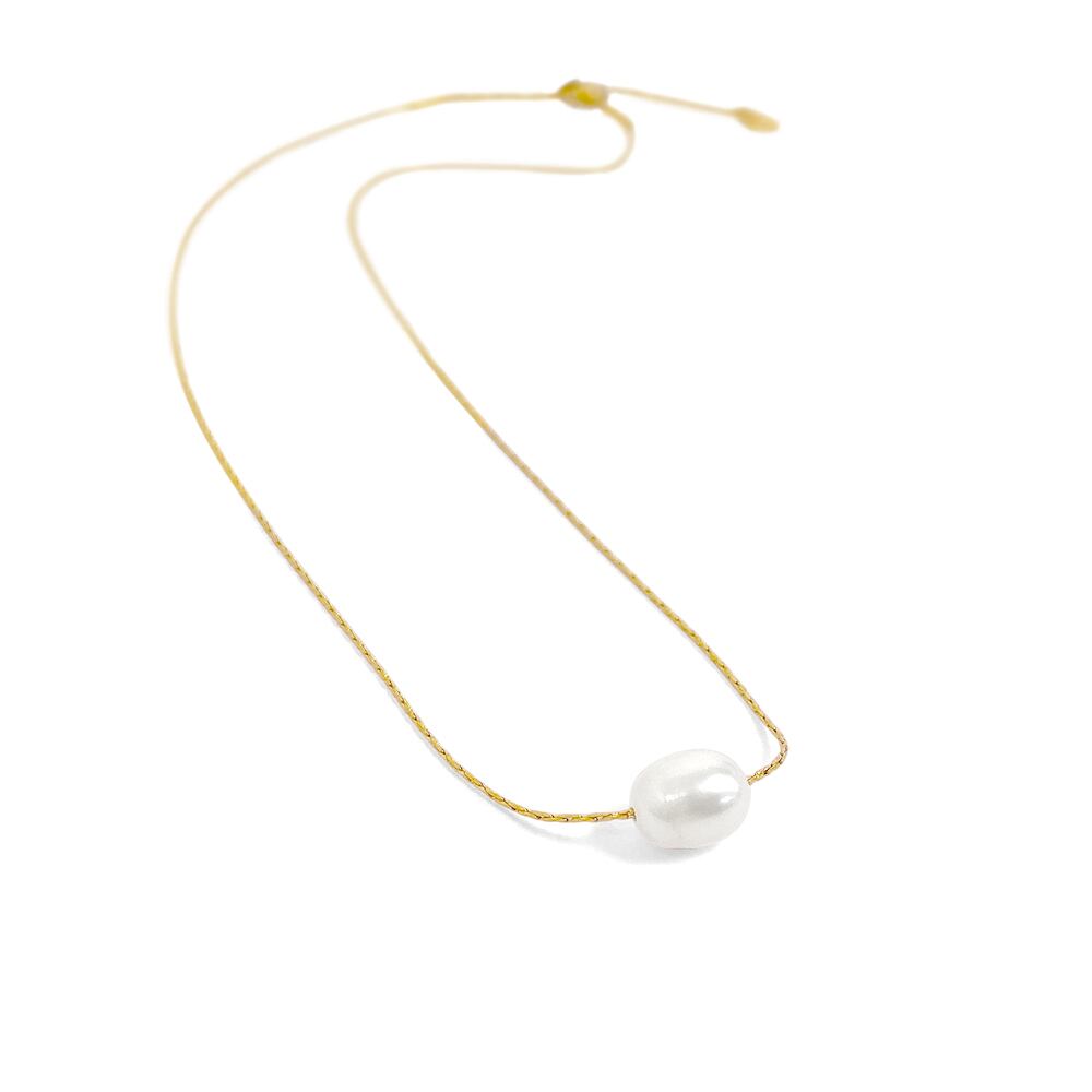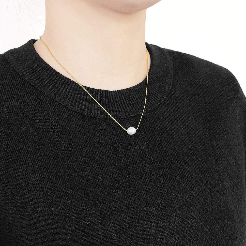 ぷっくりした小ぶりなパールと首元に馴染むスリムなゴールドチェーンが上品見えさせる、一粒淡水パールネックレス。