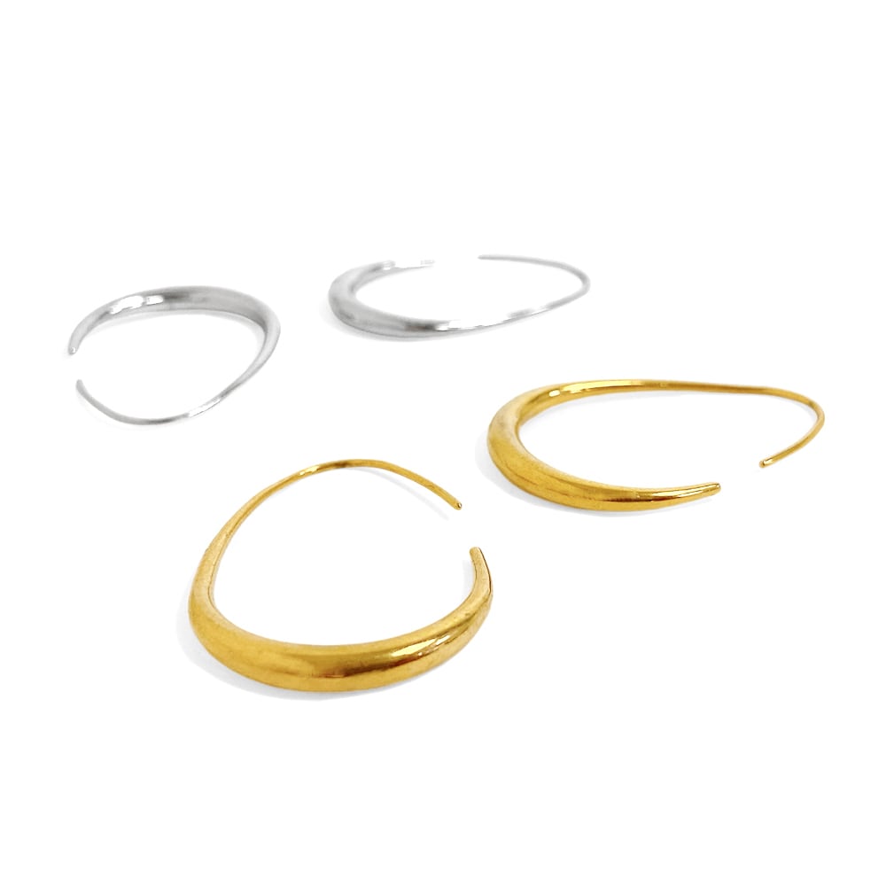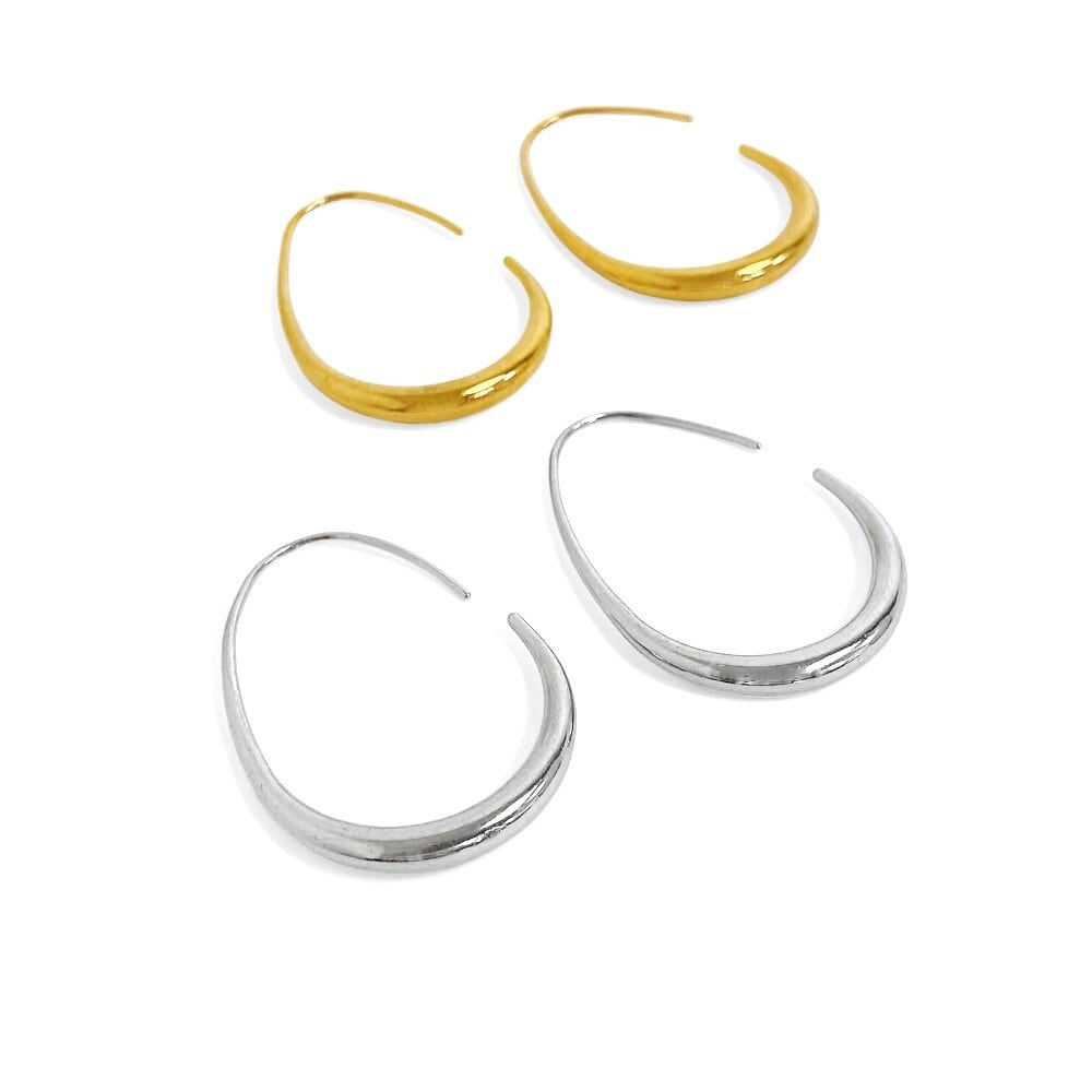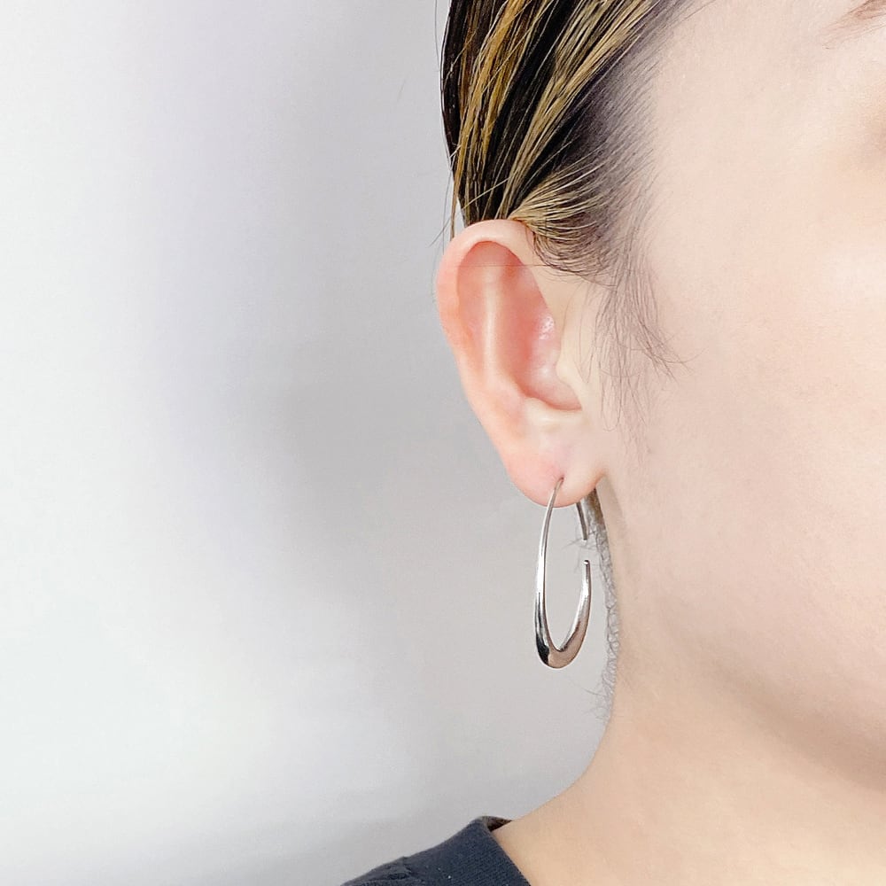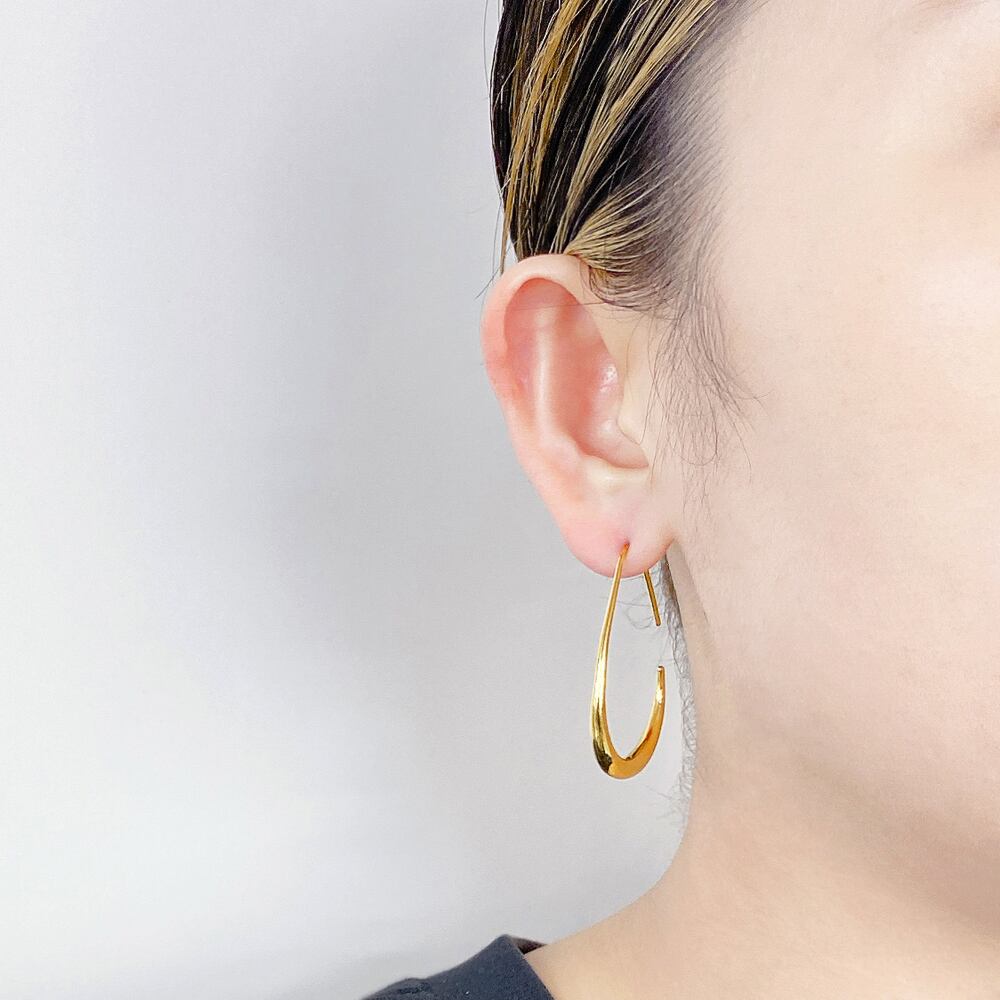 モード感あるメタルの光沢が美しい、ステンレス製ドロップフックピアス。